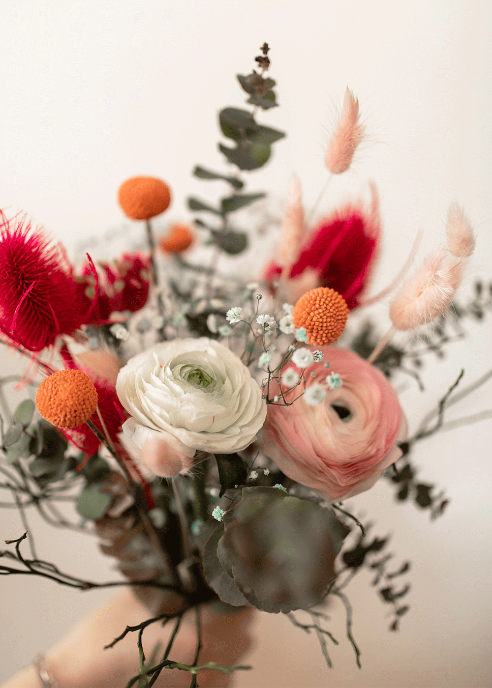 Hink med 20 blandade stjälkar till småvaser för bordsdekoration eller altargång